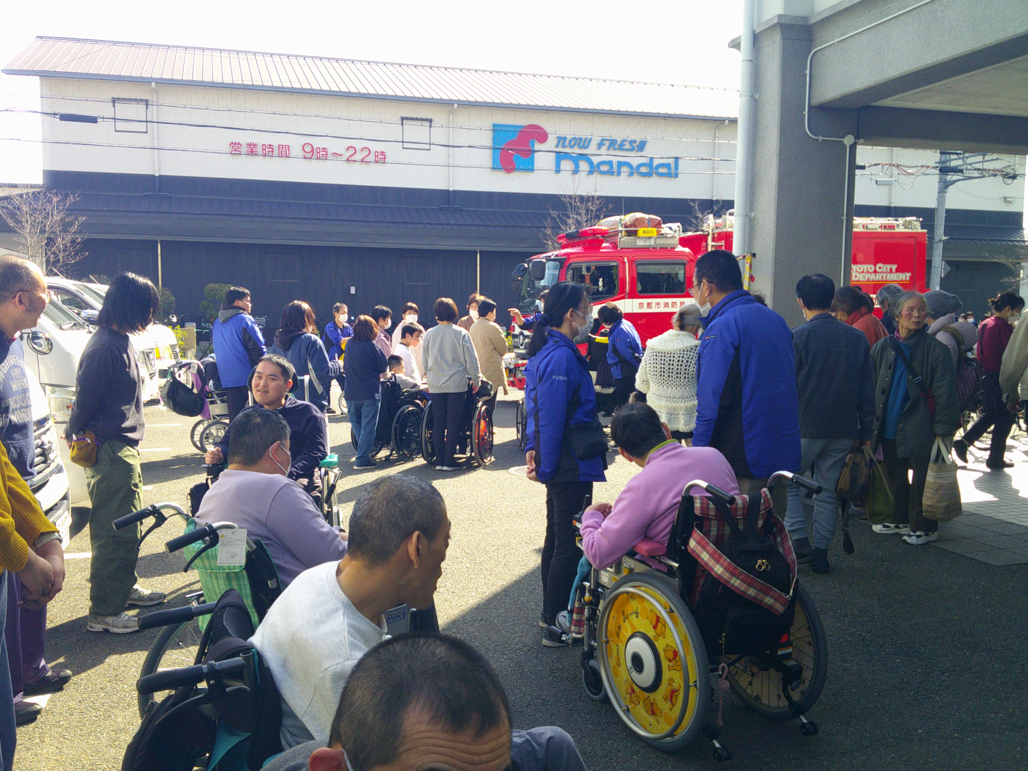 京都市シェイクアウト訓練に参加しました。 本来この訓練は、京都市がお声掛けして、みんなで一斉に机にもぐろうという訓練です。 しかし、訓練でけがをする恐れがあるため、当施設では机にもぐらず頭を守る方法で参加しました。