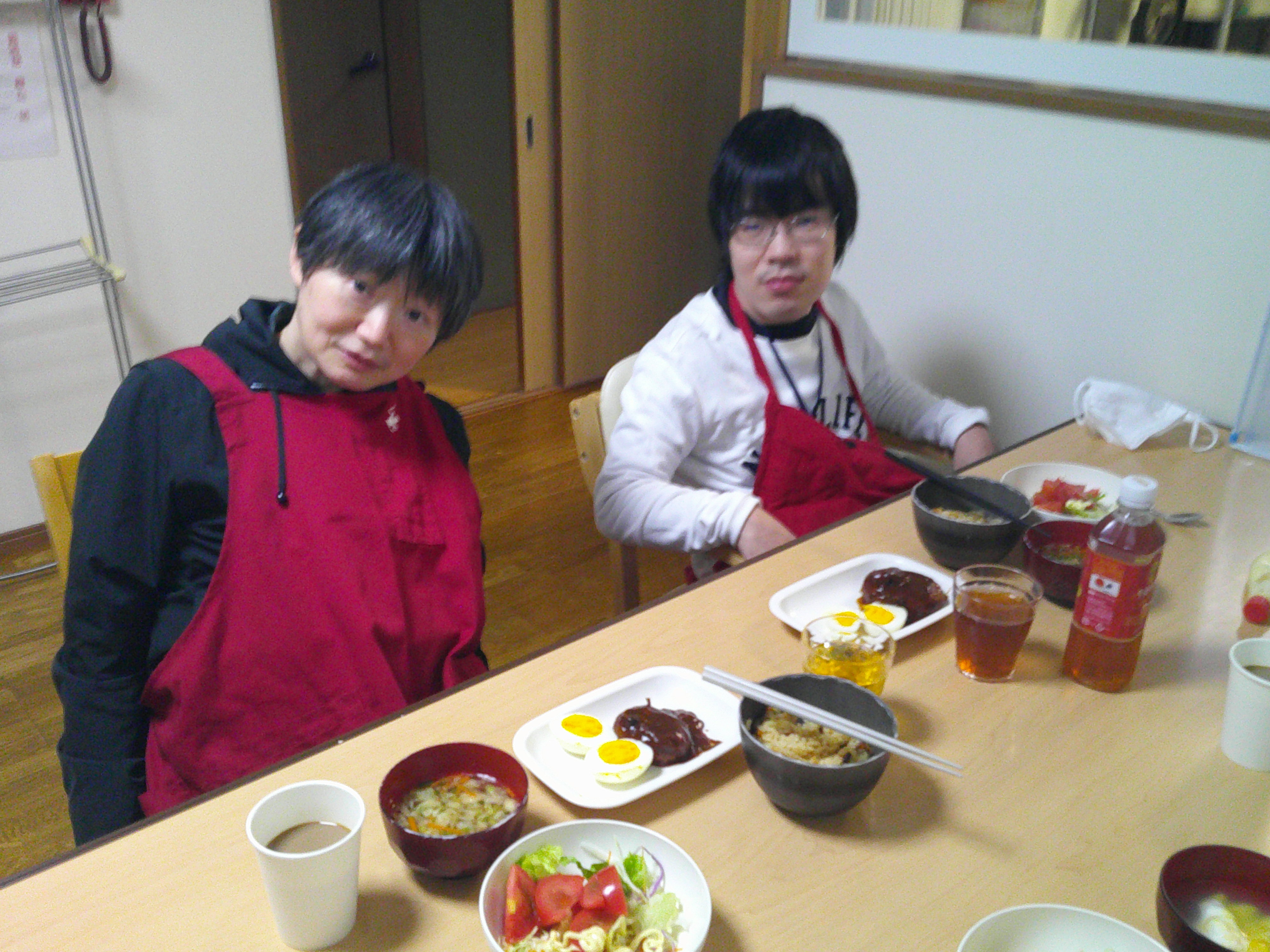 今回はハンバーグとサラダをつくりました。 ゆで卵の殻剥きの場面では、以前にお伝えしたポイントを思い出しながら取り組まれる様子が見られ、 日々の積み重ねが活かされていることを感じました。 今年度のイベントは本プログラムを持って終了となりますが、 来年度も引き続きどうぞ宜しく御願い致します。